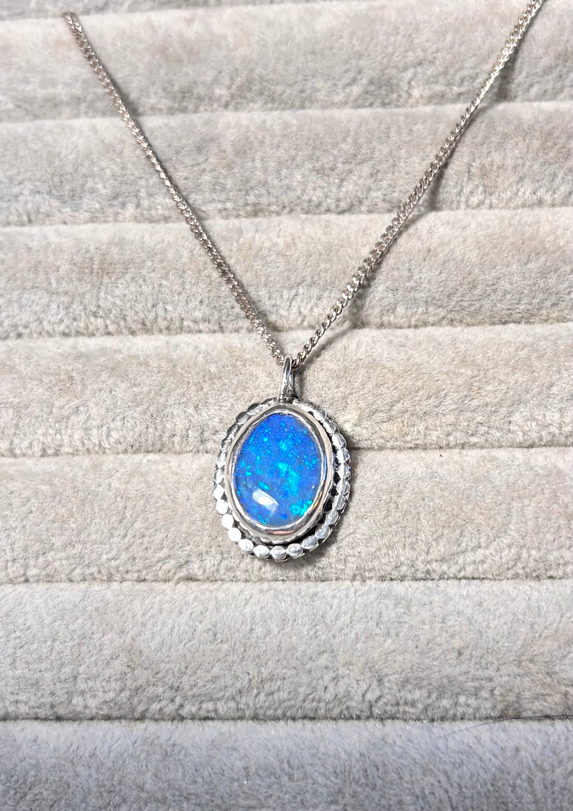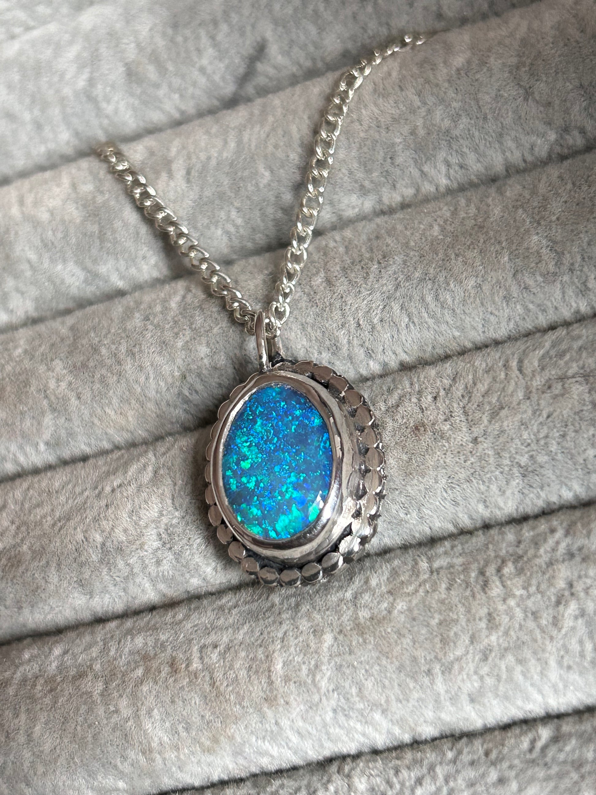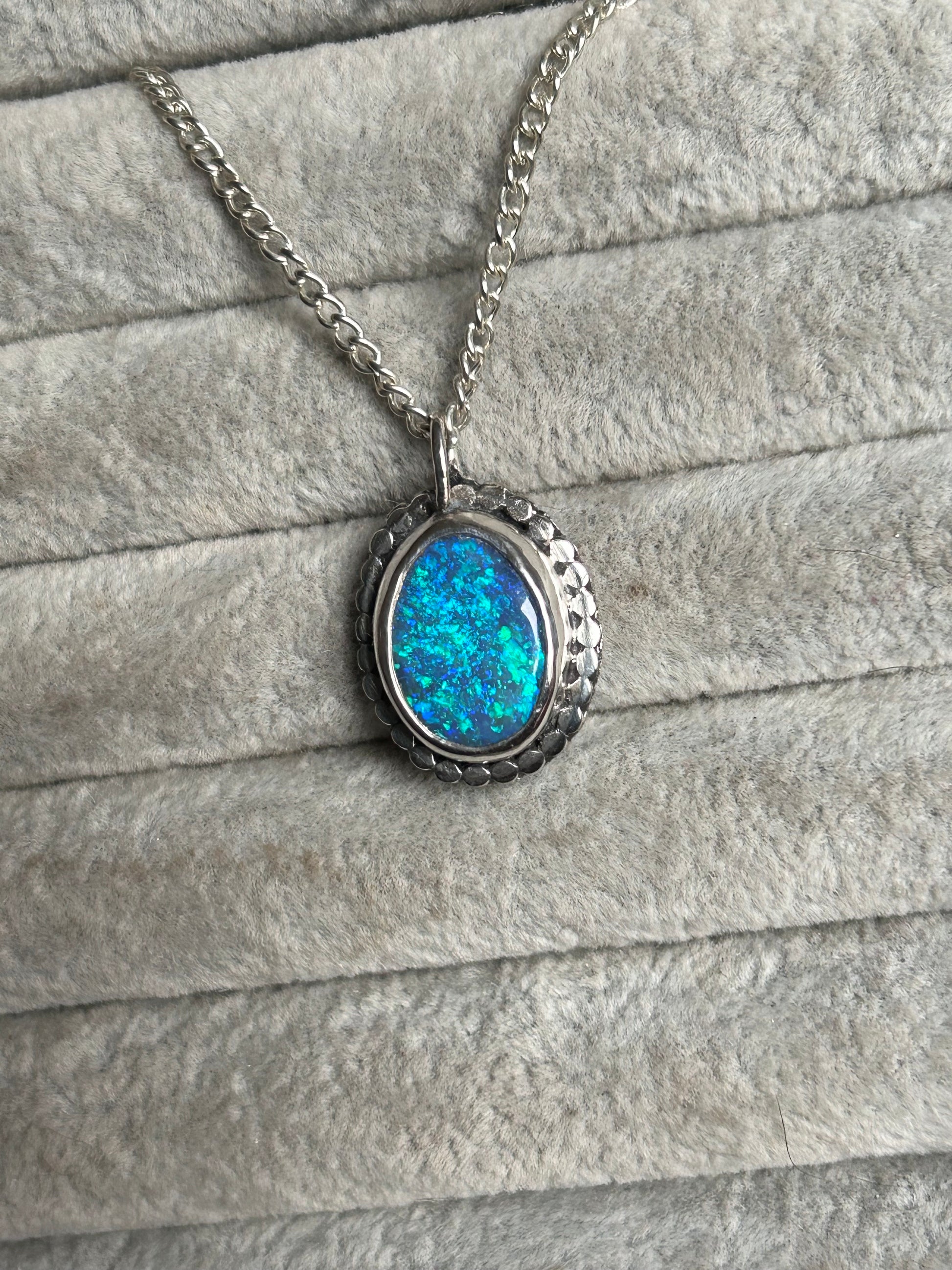 Beautiful blue crystal opal with aqua flashes. Photos really don’t do this stone justice it has a gorgeous depth of colour, absolutely stunning stone. The opal is backed with black onyx to make the colours pop, but this is by no means a cheap doublet. (see the last picture to see the thickness of the opal).