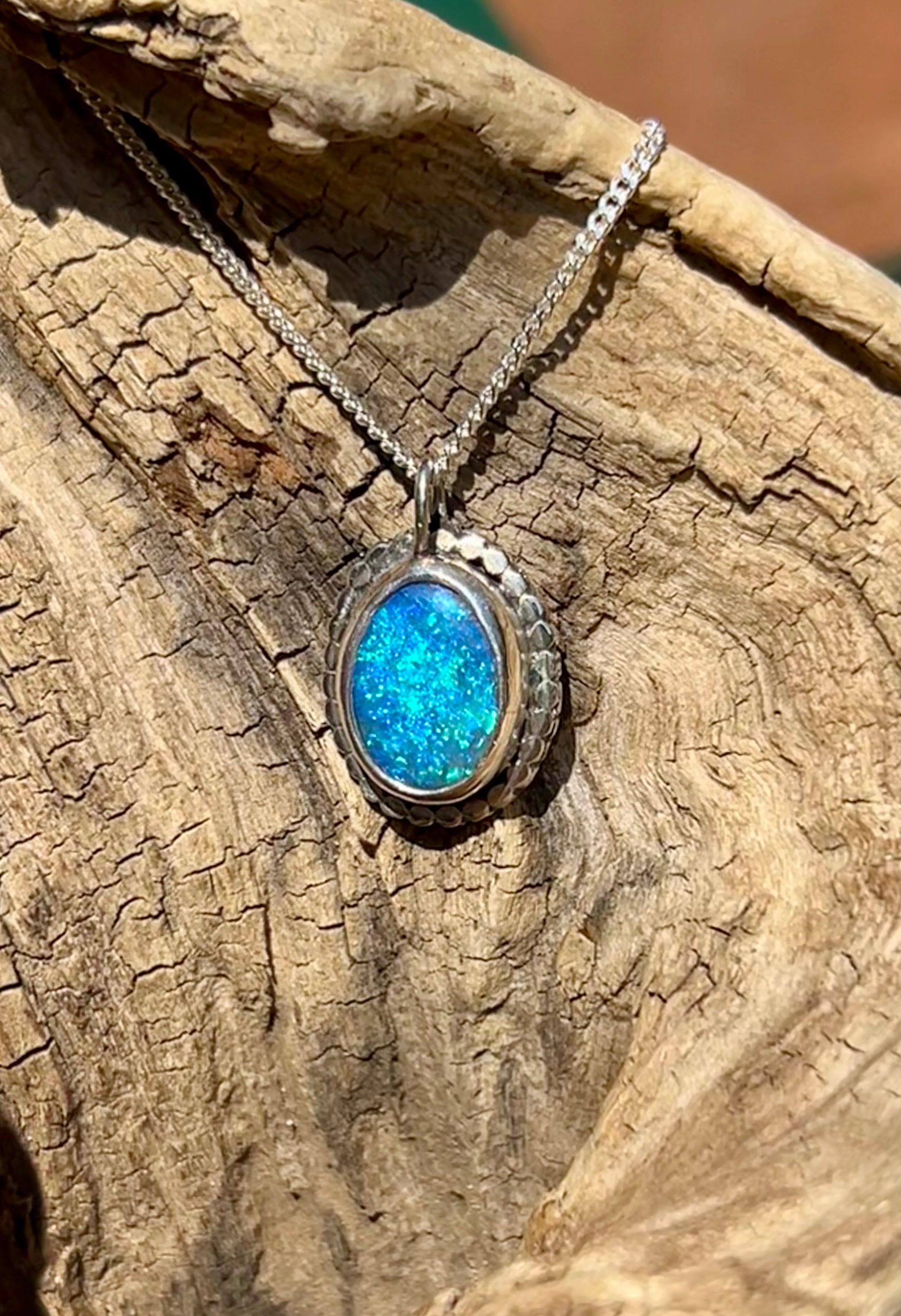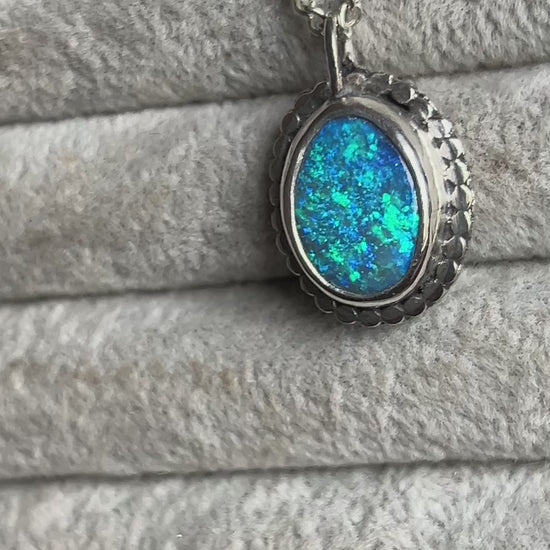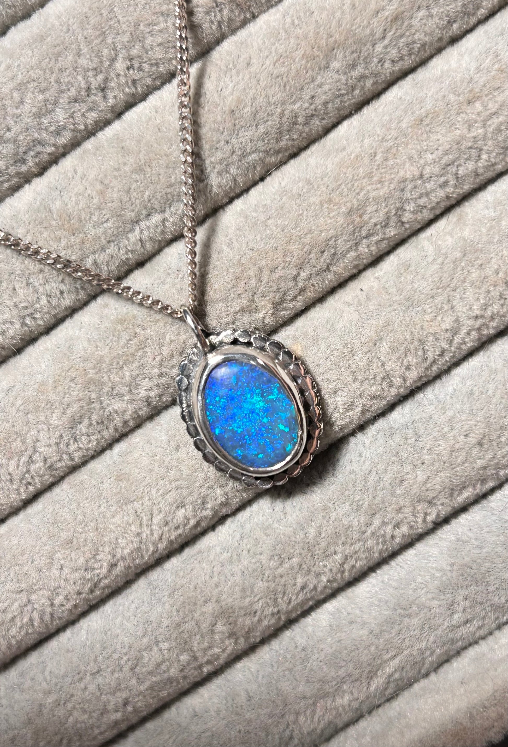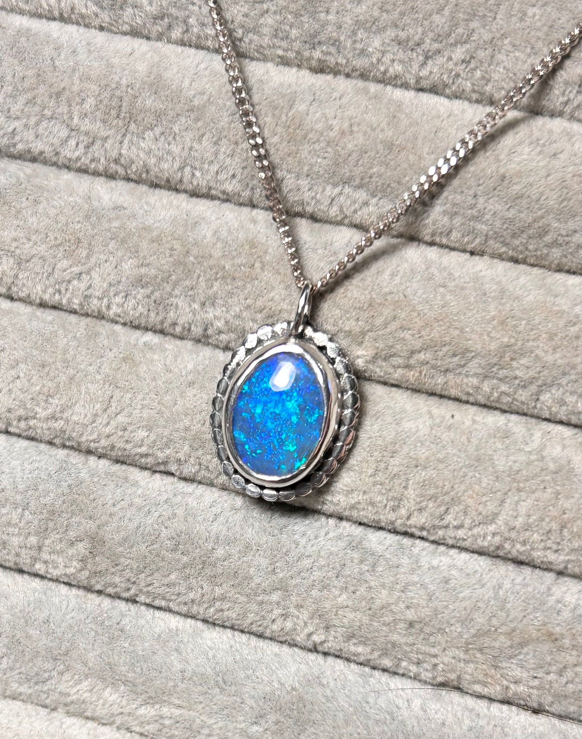 Beautiful blue crystal opal with aqua flashes. Photos really don’t do this stone justice it has a gorgeous depth of colour, absolutely stunning stone. The opal is backed with black onyx to make the colours pop, but this is by no means a cheap doublet. (see the last picture to see the thickness of the opal).